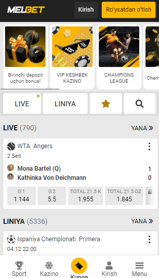 Melbetda qaysi sport turlari tasviri eng yaxshi?