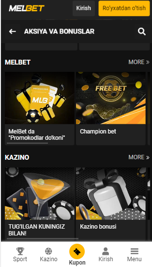 Shuningdek, Melbet bukmekerlik idorasi quyidagi ommalashgan aksiyalarni taklif etadi:
