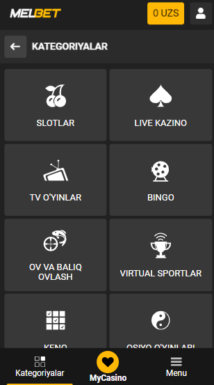 Bukmekerlik idorasi saytida sportga qo‘yiladigan stavkalardan tashqari Melbet Casino servislari ham joylashgan: